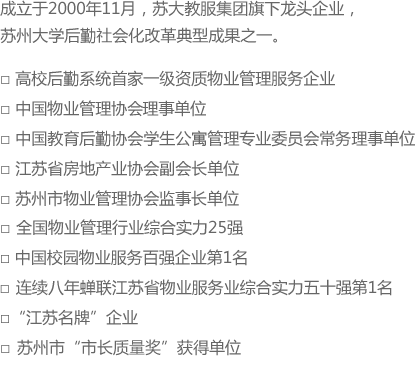 清潔與綠化養(yǎng)護(hù) 會(huì)務(wù)接待 秩序維護(hù) 設(shè)備維護(hù) 家政服務(wù) 學(xué)生公寓管理 餐飲服務(wù) FMS服務(wù) 咨詢顧問(wèn)服務(wù)